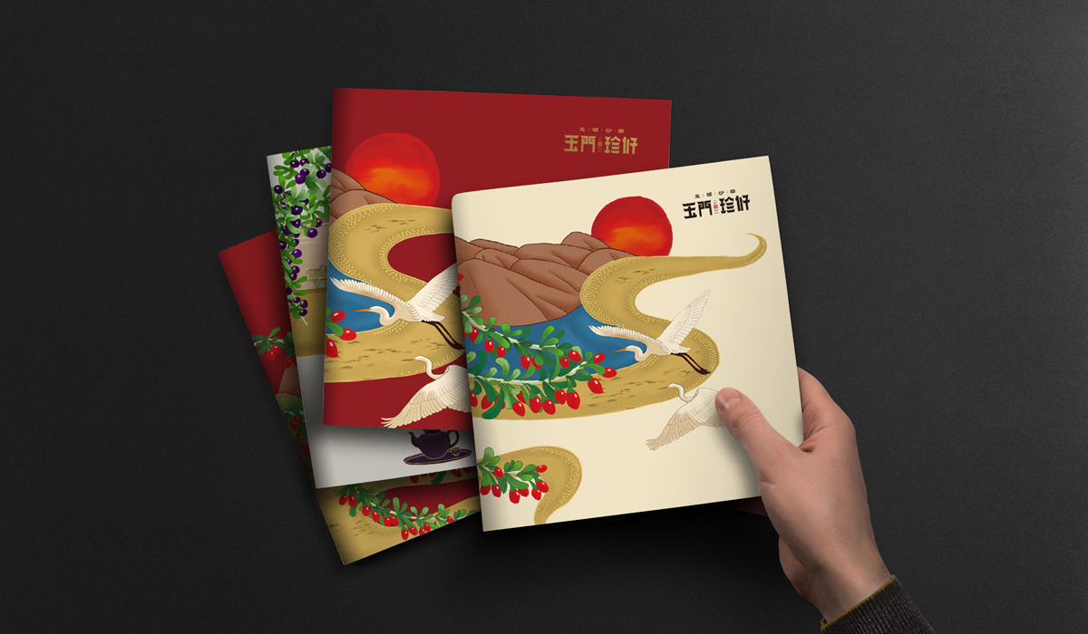 玉门珍好项目从品牌命名到形象终端落地,服务内容: 品牌全案策划,品牌定位,品牌调性,卖点提炼,品牌命名,超级符号设计,LOGO设计,VI设计,包装设计,终端形象设计,后期维护等,产品分为:黑枸杞、红枸杞、胡麻油、韭菜、葵花籽、辣椒、藜麦、蜜瓜、蟠桃、葡萄、羊肉、羊羔肉和人参果13个类别,为了树立一套有地域性、有产品个性和高度统一性的形象识别,智慧天成团队受当地政府委托,用时半个月几乎走遍玉门地标,充分了解掌握当地产业和文化,并提炼玉门最具代表性的人文、建筑、地理环境等元素,纯手绘插画形式把产品和玉门风情完美融合,形成一幅幅有创意的、生动的、美好情怀的迷人画面。