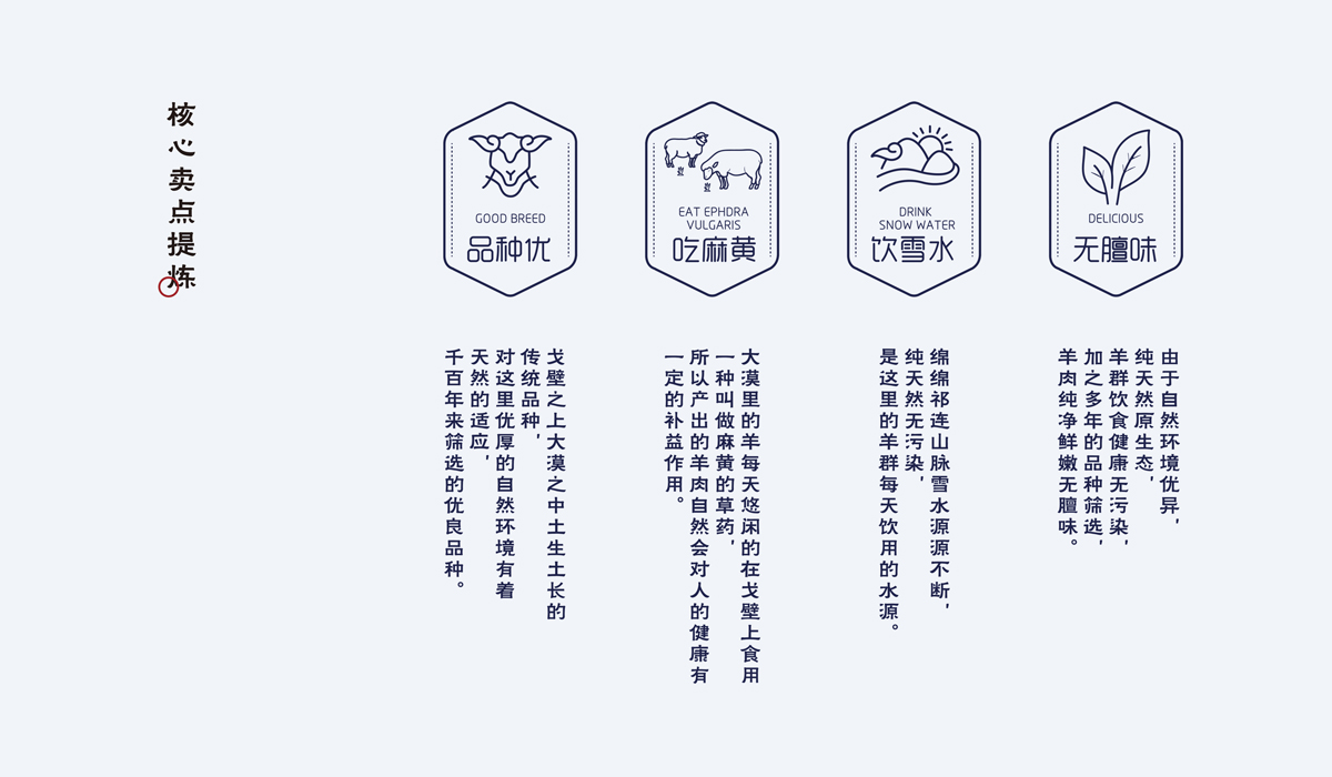 蜜瓜、蟠桃、葡萄、羊肉、羊羔肉和人参果13个类别,为了树立一套有地域性、有产品个性和高度统一性的形象识别,