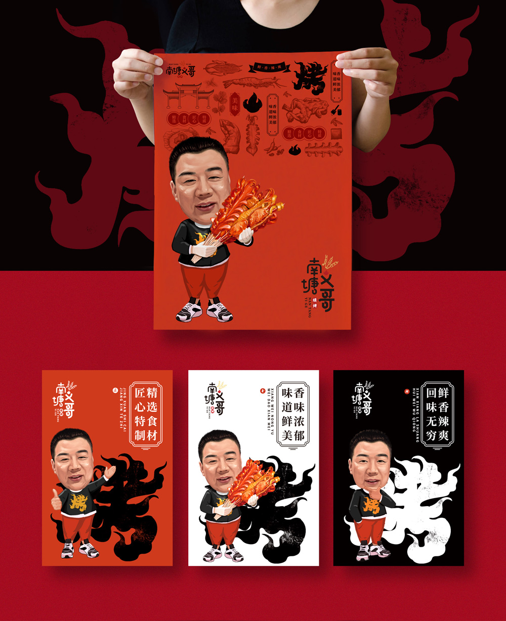 南塘义哥是享真味餐饮品牌旗下的烧烤品类,和大多数老字号特色餐饮遇到的问题一样:味道至上但不注重形象,口碑相传跟不上网红美片,在南塘老街要求整体业态形象升级的大背景下,享真味餐饮委托智慧天成为其旗下品类做品牌形象的升级工作,以传统底蕴创造出亲切易懂的视觉语言,整体注重传统餐饮的严肃性和品质感,同时以人的形象为基础创造了亲切友善的IP形象,让品牌变的有故事、有温度。