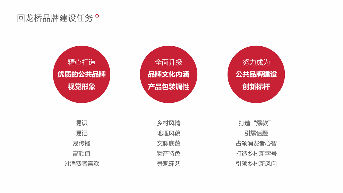 乡村振兴贵在激发区域内生动力,品牌强农,促进农品增值,农业增效,农民增收。回龙村作为宁波鄞州的璀璨明珠之一,红色印记、五星文化礼堂、回龙小葱,拥有深厚的人文底蕴。整合回龙村文化艺术、生态农业资源,明目标,重价值,靓形象,优结构,强传播,打造回龙桥区域公用品牌,不仅能让回龙村的小葱、瓜菜、种殖等产业跨越式崛起,也能使回龙村成为浙江乡村振兴代表,中国乡村振兴的样板。
