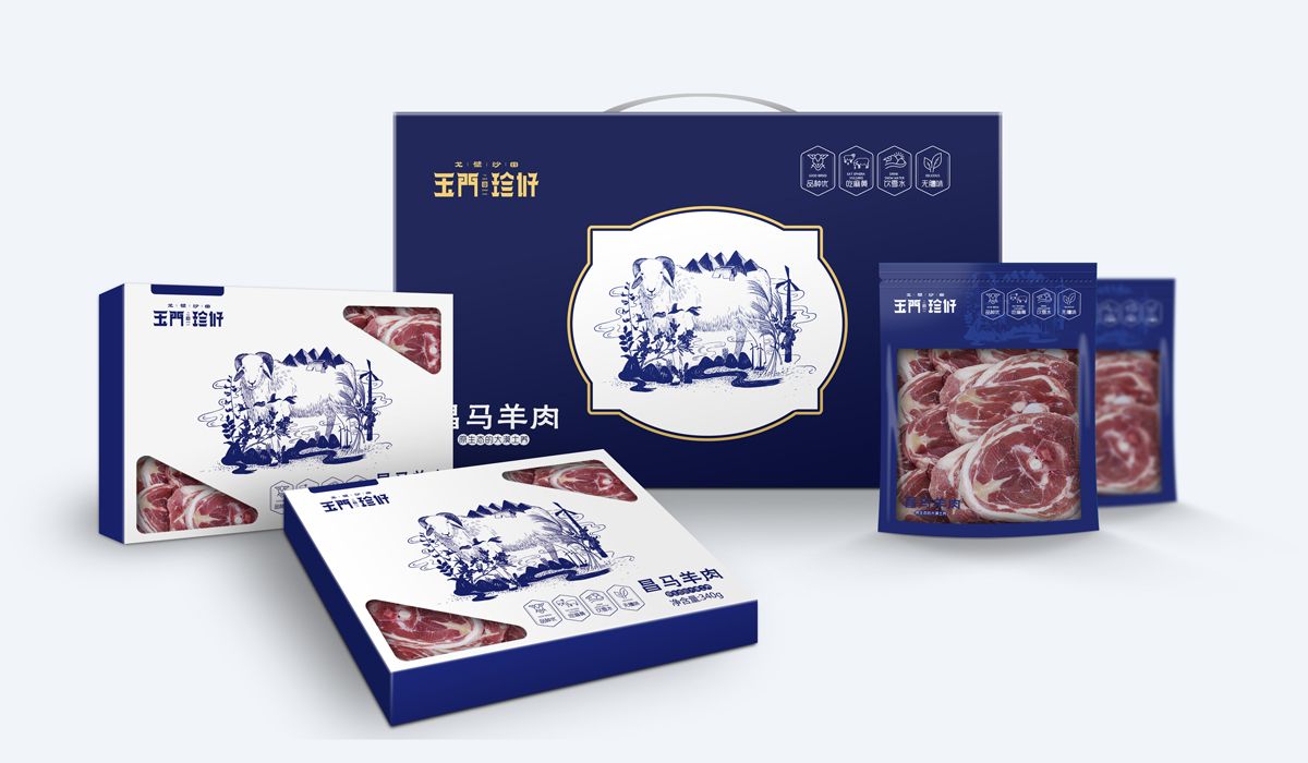 蜜瓜、蟠桃、葡萄、羊肉、羊羔肉和人参果13个类别,为了树立一套有地域性、有产品个性和高度统一性的形象识别,